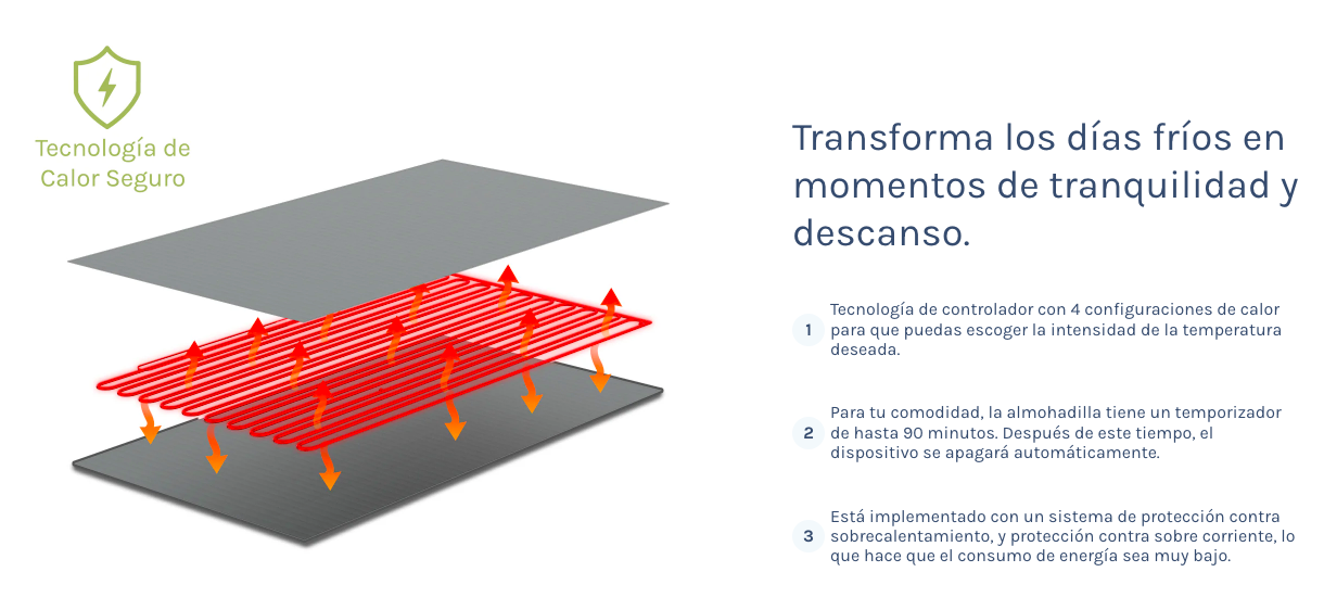 - Controlador: 1-2-3-4 configuraciones de calor con temporizador de 90 minutos