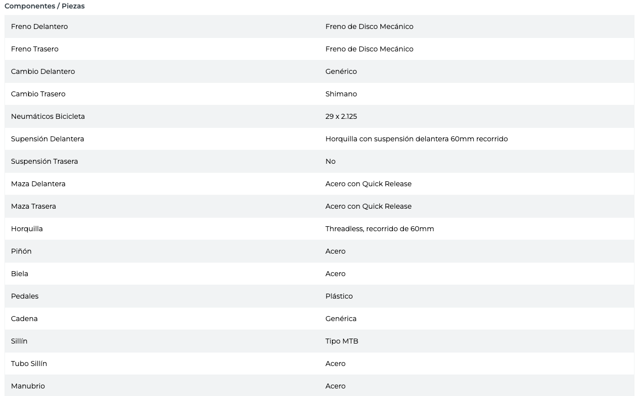BICICLETA MTB SPORT ARO 29" UNISEX / DETALLES MÍNIMOS EN EL MARCO - SIN EMBALAJE