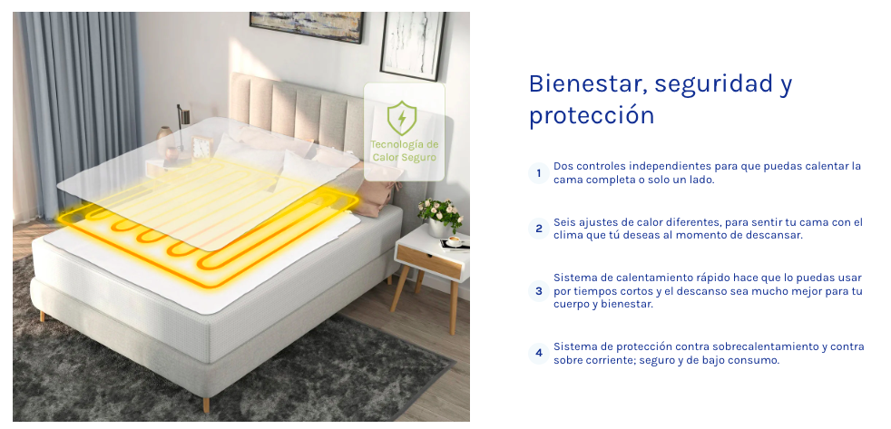 Hacer que tus noches tengan el calor perfecto se convierte en una necesidad al momento de descansar. El calientacamas de 2 plazas Ozu está diseñado para una relajación terapéutica y puedas sentir tu cama con el calor que tú deseas.
