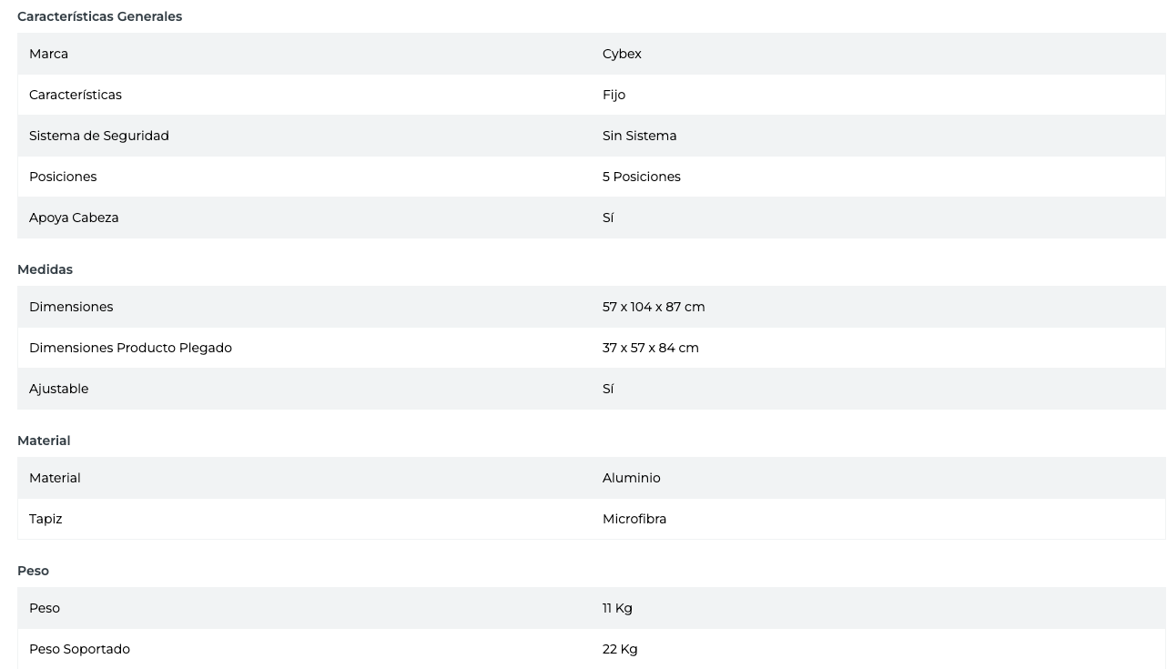- Medidas coche abierto: ancho 60 cm, alto 100-110 cm, largo 81-91 cm