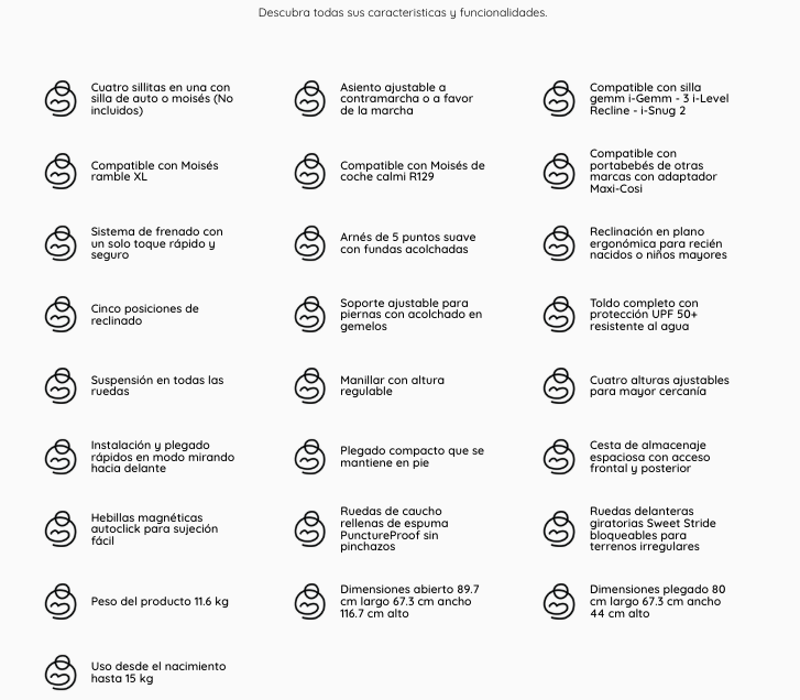 Coche Paseo Signature Aeria S Oyster Joie ¡Descubre el coche Aeria! Eleva cada paseo con un asiento ajustable en altura para mantener a tu pequeño cerca y cómodo desde el nacimiento hasta los 15 kg. Con un diseño que permite reclinar completamente el asiento y la posibilidad de ajustar la orientación hacia adelante o hacia atrás, el Aeria se adapta a diferente portabebés con facilidad. Su plegado compacto y de pie hace que sea práctico y fácil de guardar, ofreciendo comodidad y seguridad en cada salida.