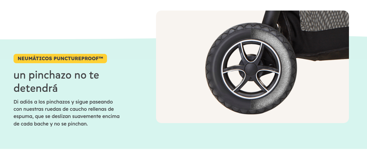 - Olvídate de los pinchazos gracias a las ruedas de caucho rellenas de espuma PunctureProof™