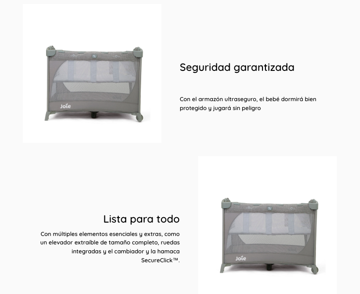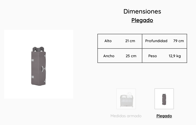 - Cuna se pliega rápidamente y se retira fácilmente.