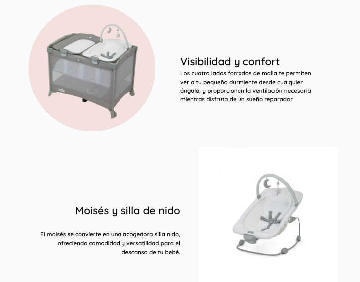 - Cuna y corral con cambiador y silla nido.