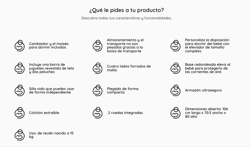La Cuna Commuter esta diseñada para mantener a tu pequeño cerca y protegido. Cuenta con cambiador y silla nido. La silla puede usar tanto como sobre como por si sola. Cuenta con una bolsa para ser utilizada durante viajes o para almacenarla.