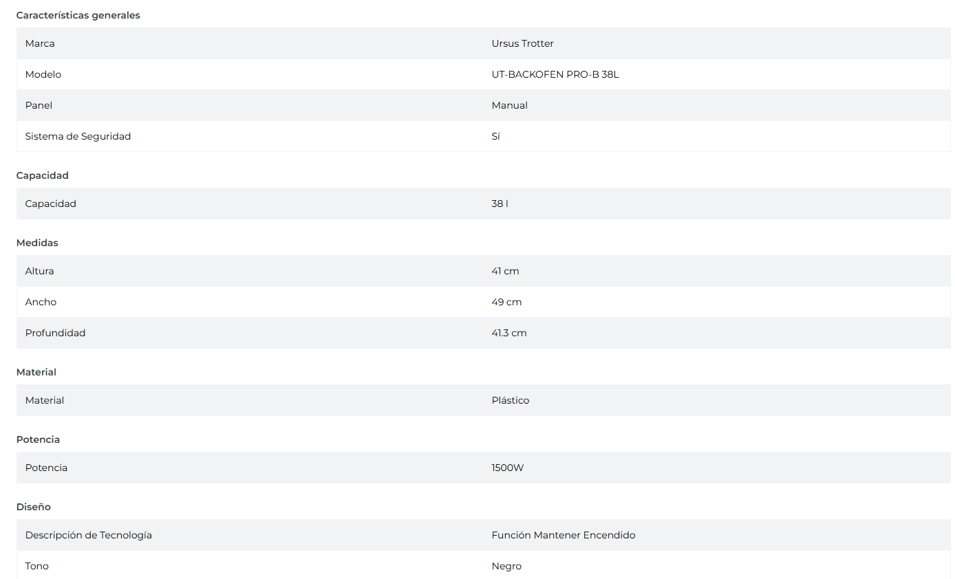 HORNO ELÉCTRICO 38 LITROS T-BACKOFEN PRO-B 38L / ABOLLADURA LEVE LATERAL - EMBALAJE DAÑADO