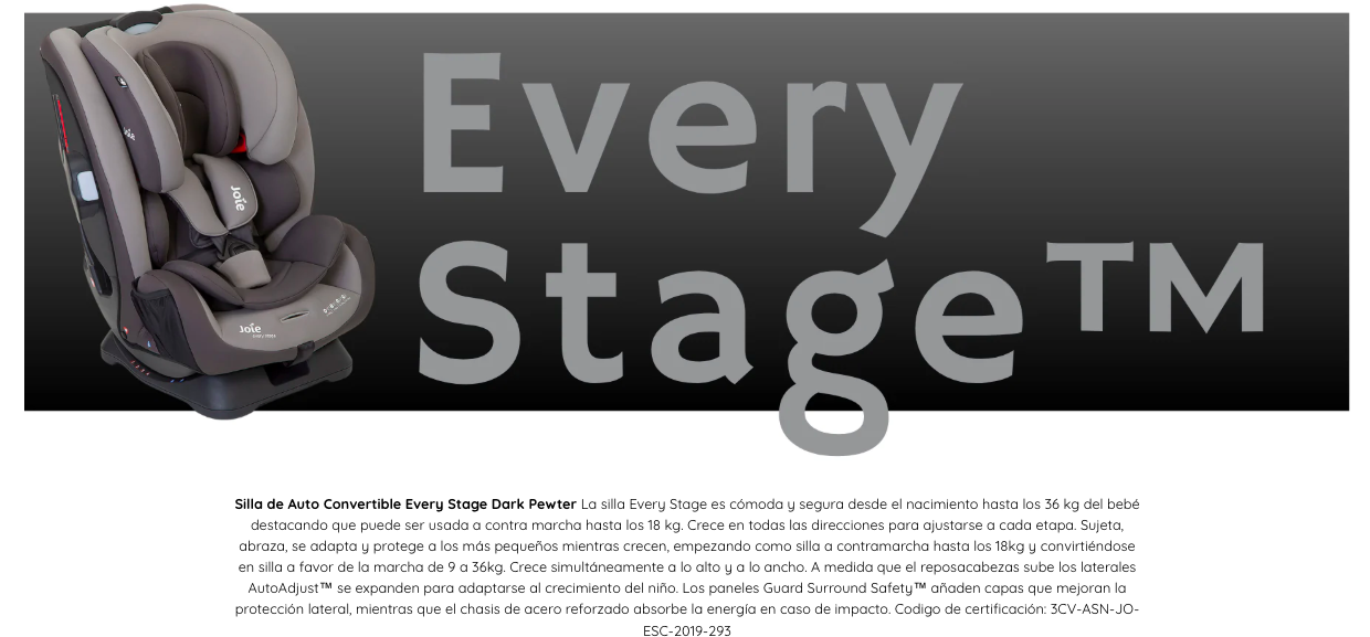JOIE - SILLA DE AUTO CONVERTIBLE EVERY STAGE DARK PEWTER / SEGUNDA SELECCIÓN CAJA CON DAÑOS