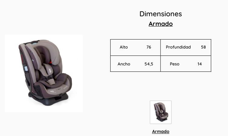 - 4 posiciones de reclinado 1 a contra marcha y 3 a favor de la marcha.