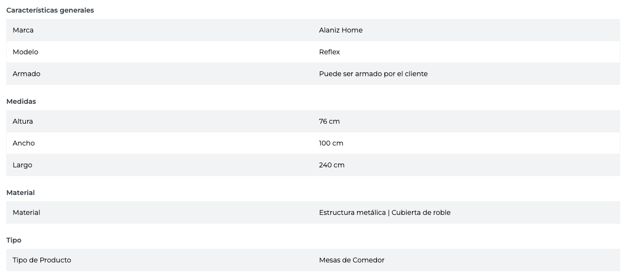 - Tipo de Producto: Mesas de Comedor