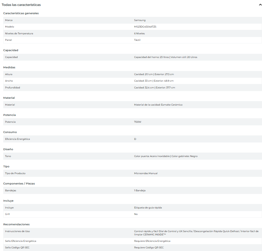 MICROONDAS CON QUICK DEFROST 23 LITROS / EMBALAJE DAÑADO