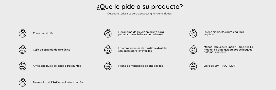 - Crece con el niño: Evoluciona con el tamaño del bebé al tamaño de un niño grande.