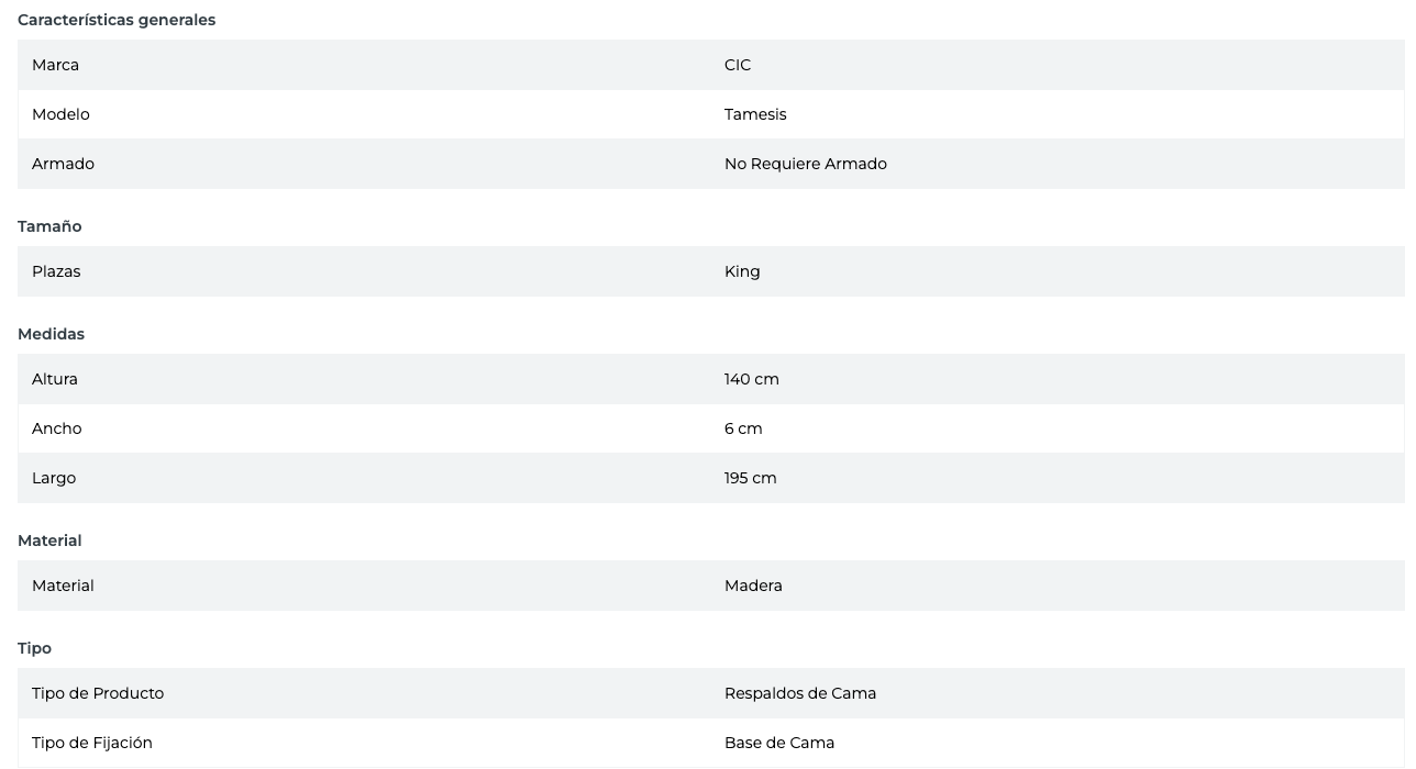 - Tipo de Producto: Respaldos de Cama