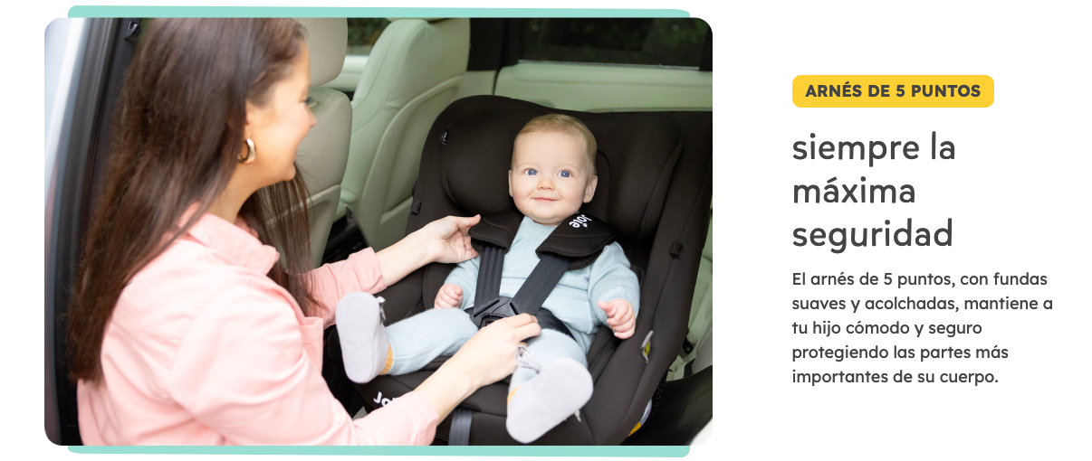 - El arnés de 5 puntos se tensa fácilmente con un solo tirón
