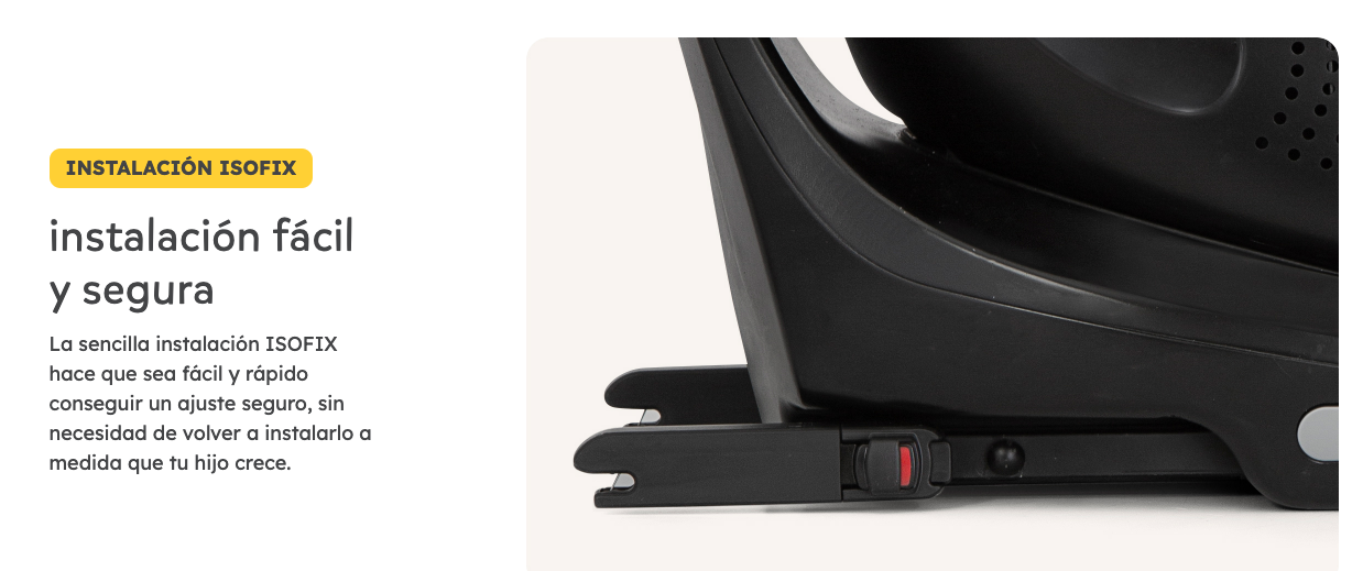 - Los conectores ISOFIX de acero se encargan de proteger al niño con total seguridad, sin importar los baches que puedas encontrar en tu aventura