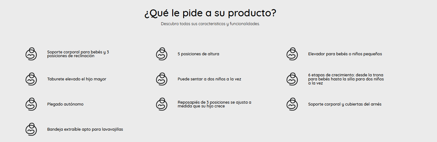 - Posee 5 posiciones de altura para adaptarse a la altura de la mesa del comedor.