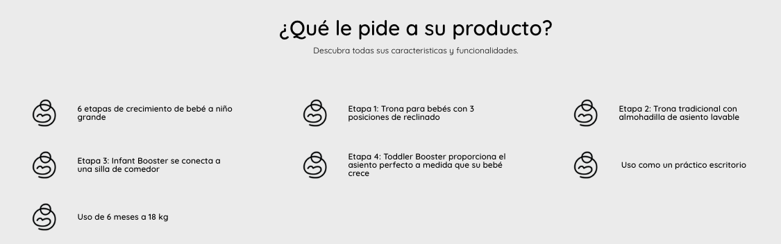 - Etapa 1: Trona para bebés con 3 posiciones de reclinado que proporciona la posición adecuada para la comodidad del bebé.