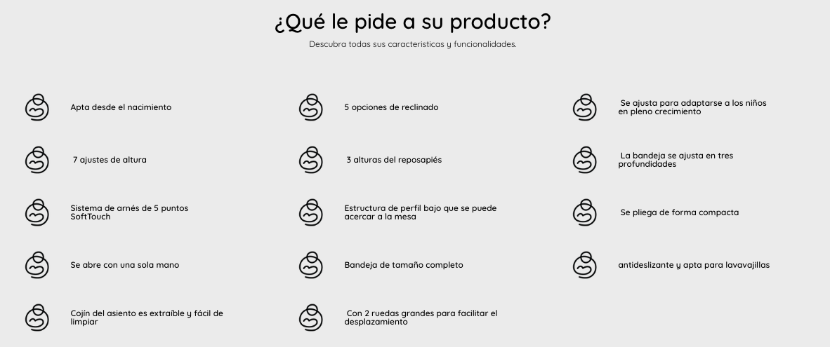 - La trona se ajusta para adaptarse a los niños en pleno crecimiento.