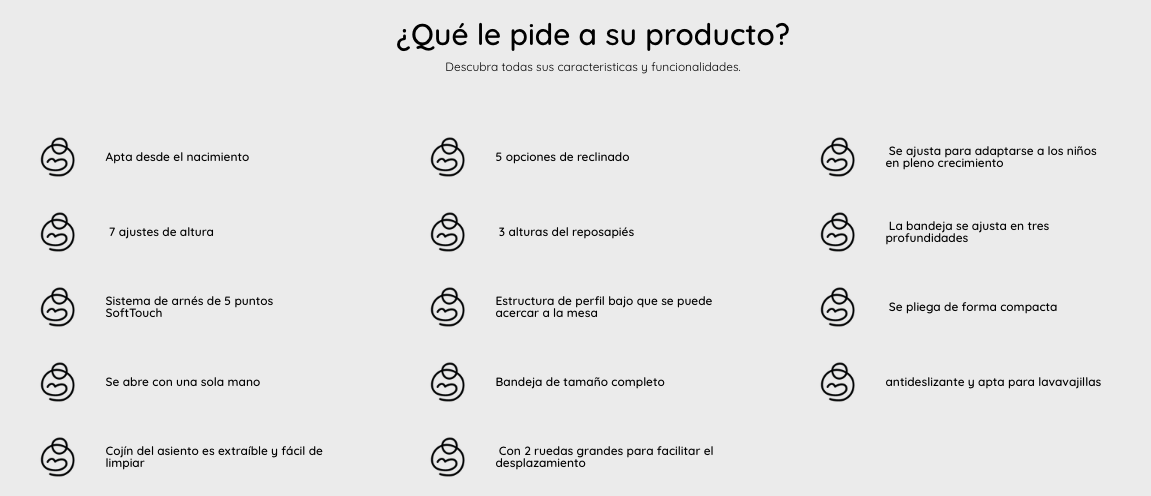 - La trona se ajusta para adaptarse a los niños en pleno crecimiento.