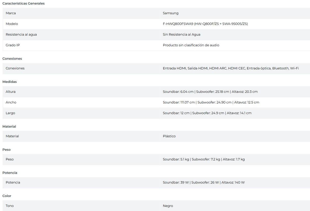 SOUNDBAR Q-SERIES HW-Q800F 7.1.4 SUBWOOFER CON ALTAVOZ INALÁMBRICO 2025 / EMBALAJE DAÑADO