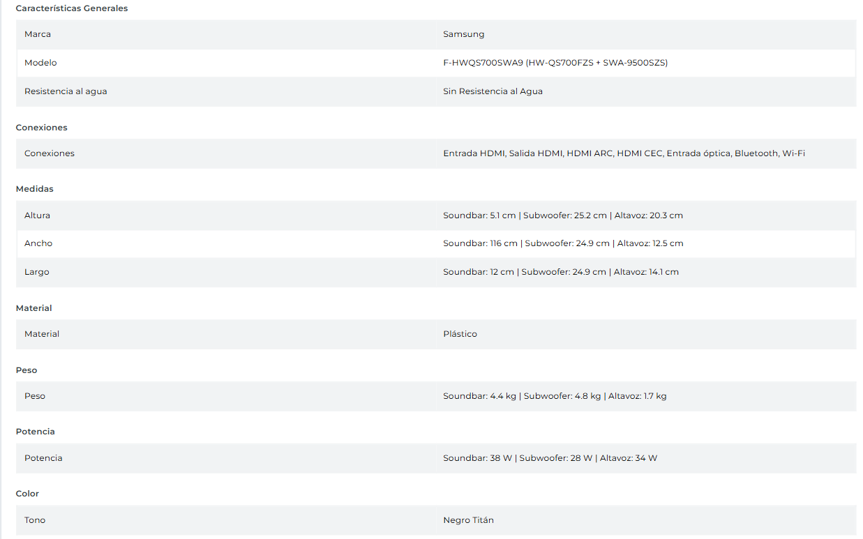 SOUNDBAR Q-SERIES HW-QS700F 3.1.2 SUBWOOFER CON ALTAVOZ INALÁMBRICO 2025 / EMBALAJE DAÑADO